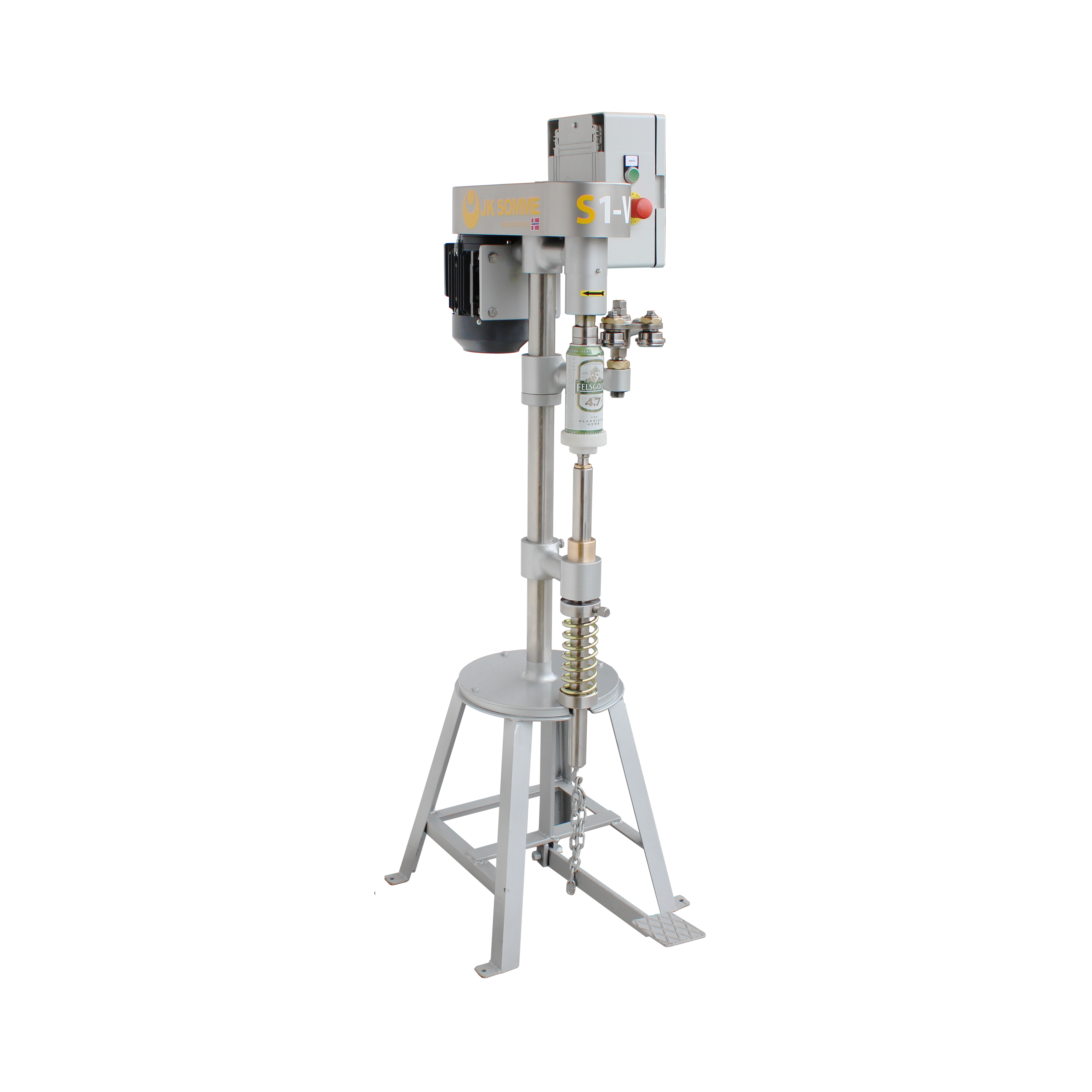 Nach einiger Recherche fiel meine Wahl auf einen spanischen Traditionshersteller mit norwegischen Wurzeln, SOMME. Der Marktführer für nichtzentrische vollautomatische Dosenverschließer, z.B. für die Fischkonservenindustrie, hat auch einen einfach zu bedienenden und robusten manuellen Verschließer für runde Dosen im Programm, den Manual Can Seamer S-1. Ihn gibt’s in einer lackierten Metall- und in einer Vollniro-Ausführung. Weitere Option ist die Drehzahl- regelung für die Verpackung von stückigem Füllgut. Neben dem Einsatz im Technikum eignet sich der S-1 -technisch wie preislich- auch für die Kleinserienfertigung.